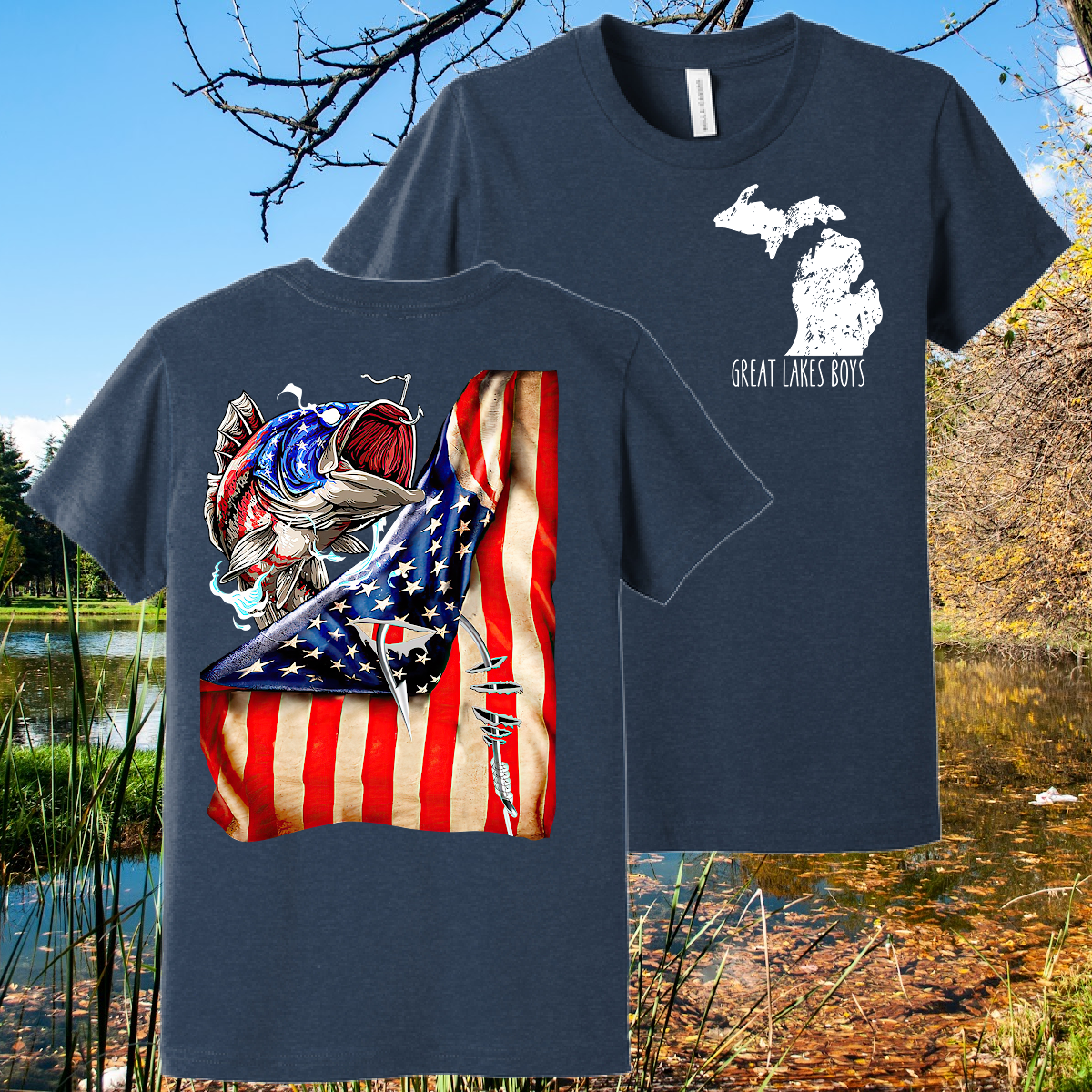 Great Lakes Boys - American Flag Bass Fish Premium Tee (Toddler, Youth & Adult)