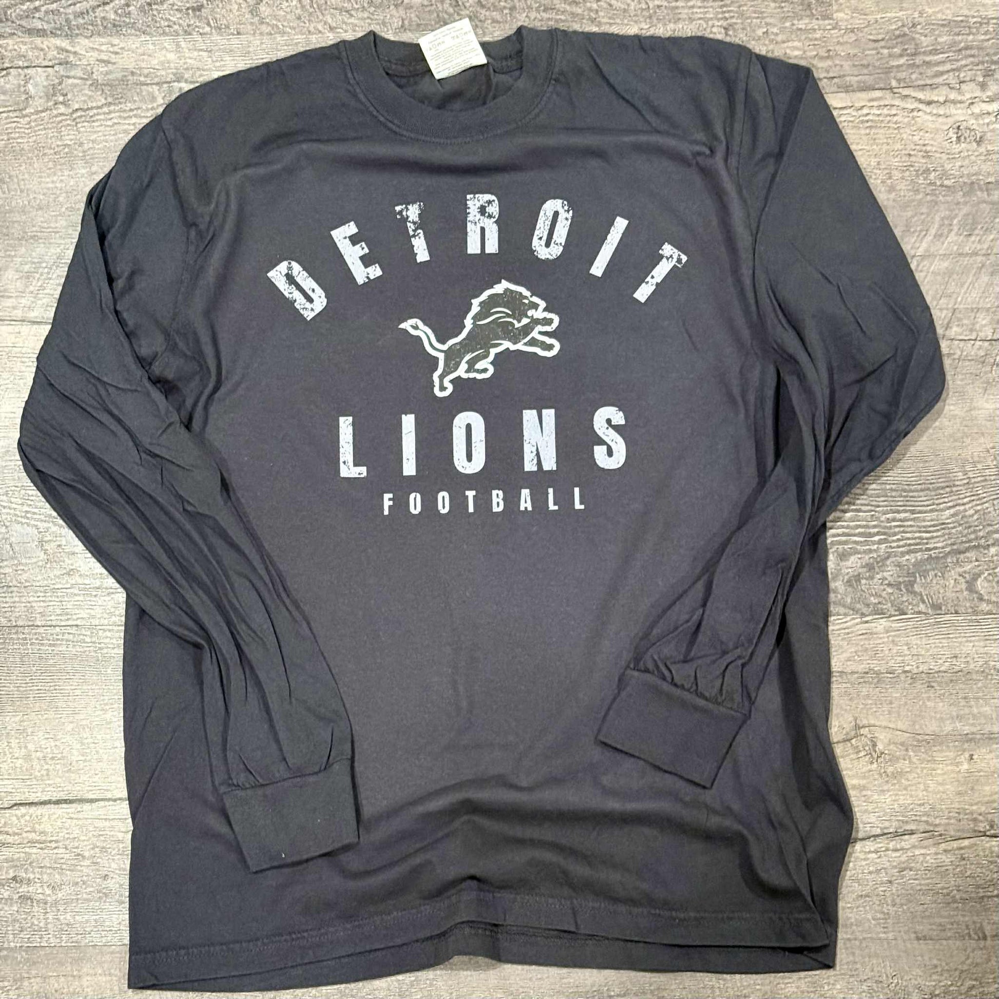 Ready To Ship - Detroit Football Simple Distressed Blackout Long Sleeve CC Tee